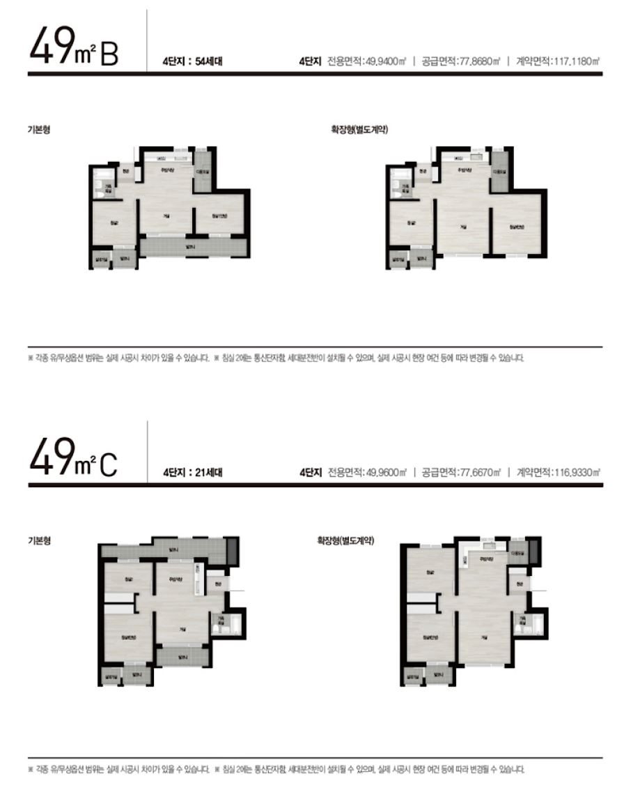 ※ 주택형 약식표기 후단의 “_1”, “_2”, “_3”, “_4” 부기 표기는 단지 표기이며, 전용면적은 동일하나, 주거공용면적 차이로 인한 공급면적 및 계약면적이 상이하오니 이 점 참고하시기 바랍니다.